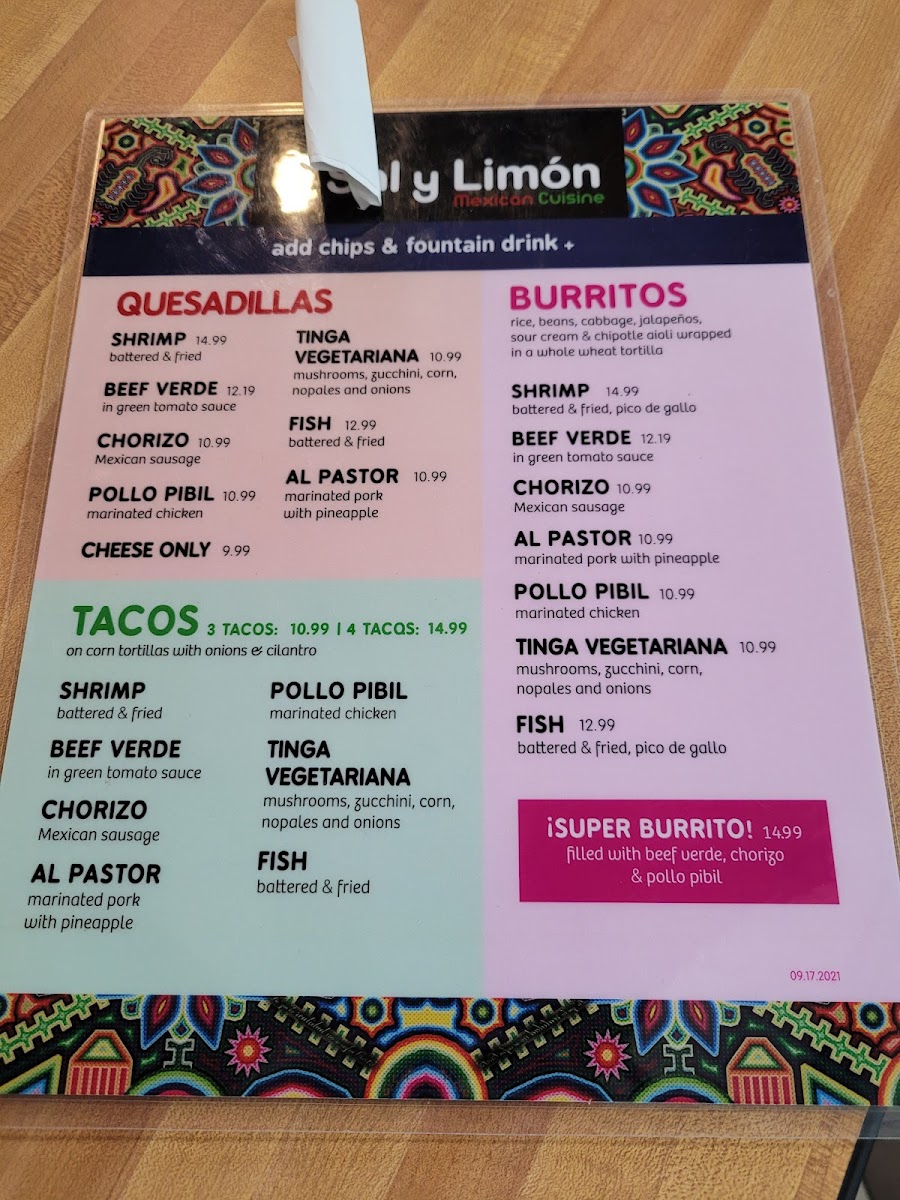 Sal Y Limón Menu (2025 Update)