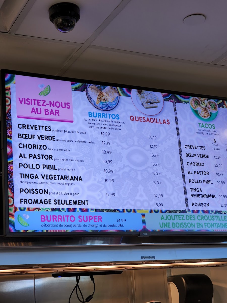 - Quesadillas: Choose from options like Chorizo and Shrimp.